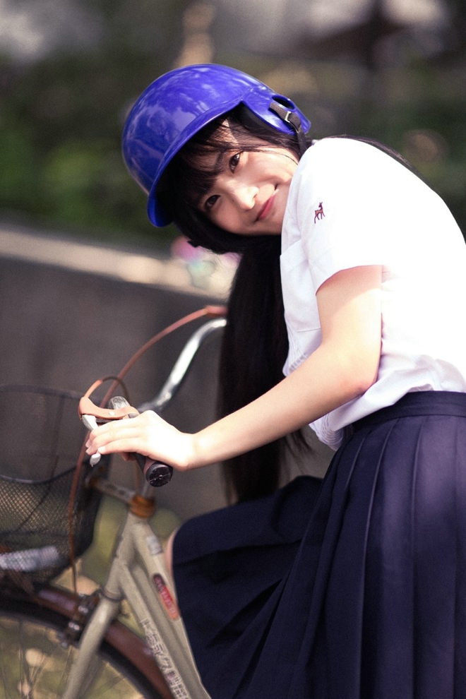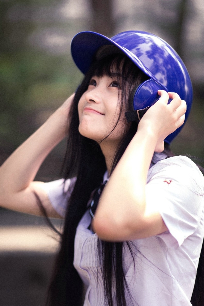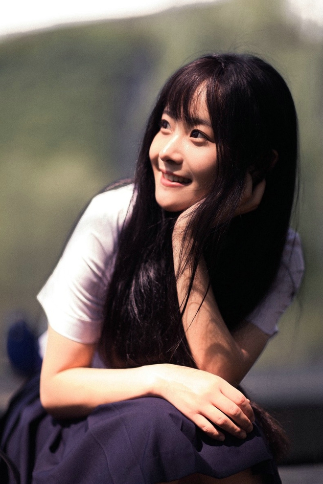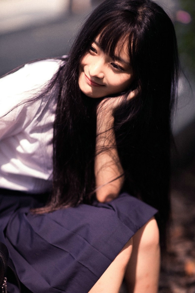 清纯阳光靓丽直发美女学生装短裙清新户外娇巧甜美阳光唯美写真